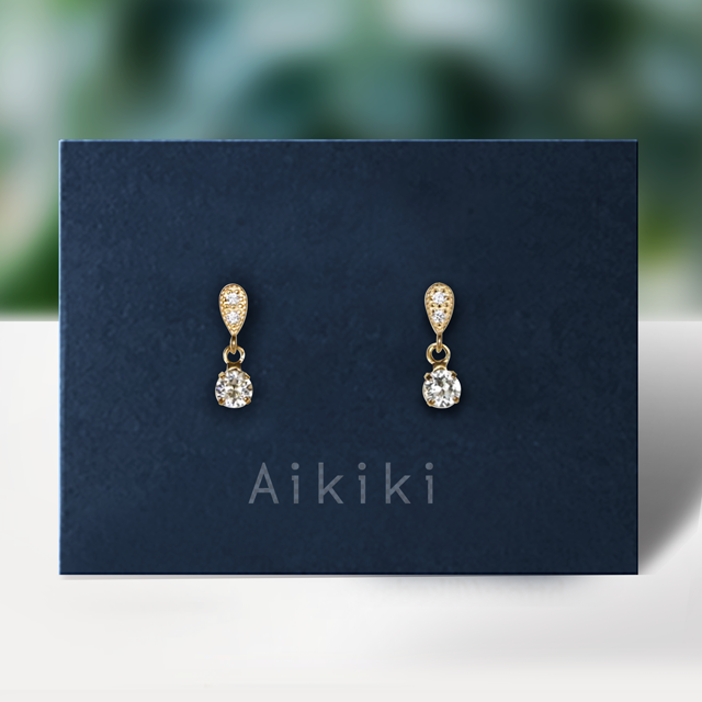 揺れるスワロフスキーと小さなジルコニアの18KGPスタッド
